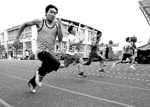 5月8日,蘆山中學(xué)高二體育特長(zhǎng)生在進(jìn)行變速跑訓(xùn)練。蘆山人災(zāi)后讓夢(mèng)再起飛 。新華社發(fā)