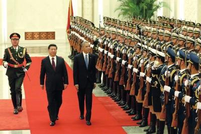 習近平主席在人民大會堂為奧巴馬舉行歡迎儀式。新華社發
