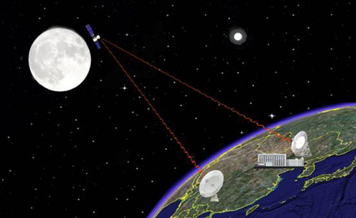 CE-1衛星探測數據的接收必須是衛星處于測控系統喀什站和青島站的可跟蹤和可控的可見弧段內以及進入地面應用系統密云50米數據接收站和昆明站40米天線數據接收站的可接收弧段內才能進行的,四站同時跟蹤衛星信號。在喀什站、青島站對衛星精確測控的輔助下,CCD立體相機拍攝獲得的圖像數據通過衛星上的有效載荷數據處理系統存儲、編碼,然后傳送至衛星發射機,通過星上定向天線以固定頻率向地球發送,北京密云地面站和昆明地面站同時接收下傳數據,并通過專用的光纖通信網絡實時傳輸到坐落在中國科學院國家天文臺的地面應用系統總部后,進行數據的分析、處理與研究的。