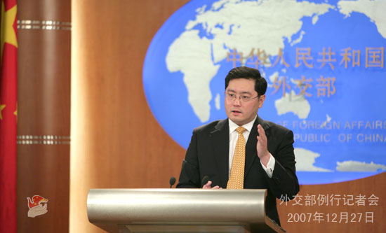 中新網(wǎng)12月27日電 據(jù)外交部網(wǎng)站消息,2007年12月27日,外交部發(fā)言人秦剛舉行例行記者會,就日本首相福田訪華及六方會談等問題答記者問。
