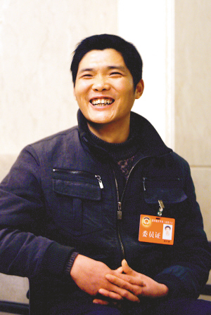 謝松洪,25歲,17歲進入軍營,退伍后進入新世紀保安部工作。今年作為農民工代表,當選市人大代表。