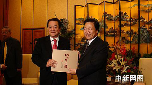 中共江蘇省委書記梁保華向臺(tái)商代表贈(zèng)送《情系中山陵》畫冊(cè)。 作 者:丁梅