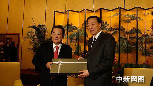 江蘇代省長(zhǎng)羅志軍與臺(tái)商代表互贈(zèng)禮品。 作 者:丁梅
