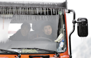 昨天上午,記者再次來(lái)到京珠北高寒路段,路面上結(jié)了白色的冰層,在33公里處西山大橋路面,冰層厚達(dá)兩厘米以上,車(chē)輛只能以極其緩慢的速度通行。此時(shí)車(chē)上的溫度計(jì)顯示車(chē)外氣溫是零下3℃。在云巖路段,記者看到積雪最厚處約有8厘米左右。