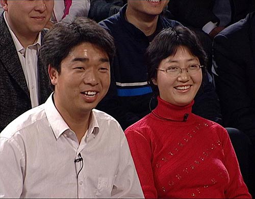 崔永元:我介紹您認識兩個新農民吧,他們來自湖北省咸寧市,是種植水果的農民,叫師智敏,歡迎他。還有師智敏的妻子楊玉鳳,歡迎她。師智敏你告訴大家,在做農民之前你在干什么?