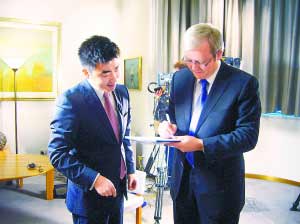 針對當前的國際經濟形勢,陸克文坦言,兩國之間應該建立良好的經濟伙伴關系,共同面對世界經濟格局的變化。“我認為如果我們的國家能夠協調我們的合作,不僅是管理我們雙方的利益,而且對全地區,以及全世界所面對的問題,我想我能夠給全世界人民帶來很大的一種好處。”
