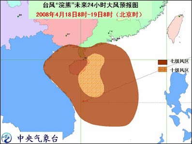 受其影響,今天白天到夜間,南海中北部海面、海南南部和東部沿海將有8-10級大風(fēng),瓊州海峽、廣東沿海、海南西部沿海、廣西沿海、北部灣海面也將有7-8級大風(fēng),臺風(fēng)中心經(jīng)過的附近海面或地區(qū)的風(fēng)力有11-13級;海南中東部、廣東沿海以及雷州半島將有大到暴雨,其中海南東部的部分地區(qū)有大暴雨。