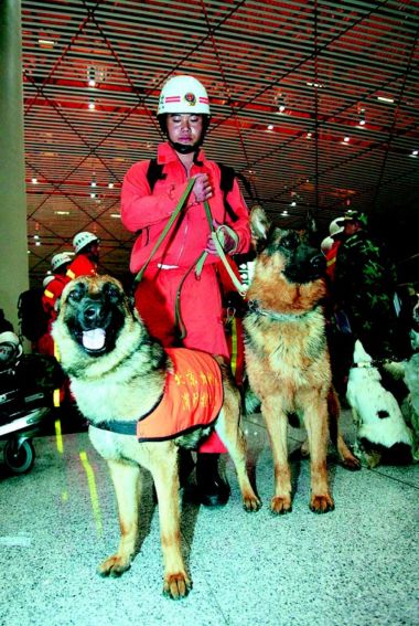 加上北京消防搜救犬隊10條素質優良的搜救犬,災區消防搜救犬數量已經達到66條。(倪樂)
