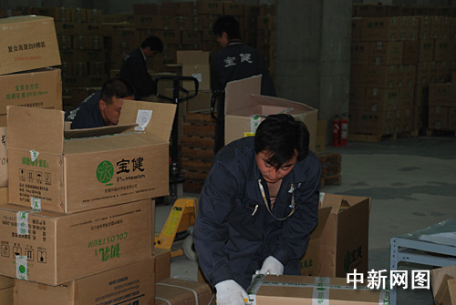 寶健工人正在裝運救災(zāi)物資