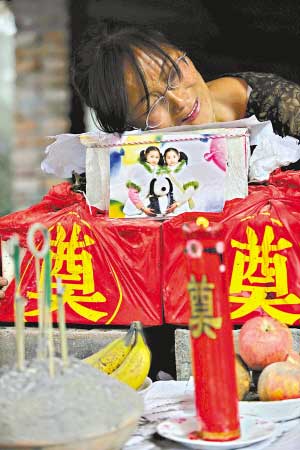 昨天,在自己倒塌的房屋前,趙德琴給兩個孩子設了一個小靈堂,她抱著兩個孩子的遺像,溫柔地說著:“孩子,我們分別10天了。”她見人就說:“琦琦在母親節那天把我帶到一個餐館里,用她的零花錢給我準備了一頓飯,還突然地從身后拿出一枝花,她好幾天前就說過要給我一個驚喜的。我還沒告訴她‘琦琦,媽媽那次真的很驚喜。’”