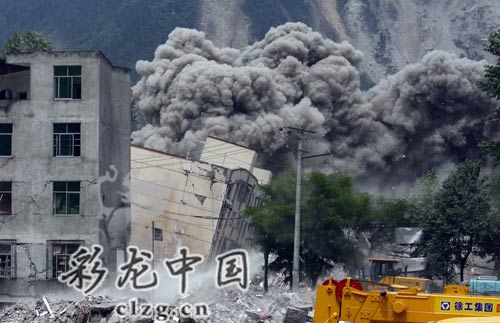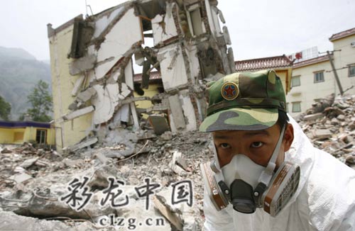 中午12時左右,在鎮(zhèn)中心附近,尖銳刺耳的哨聲,一聲驚天動地的巨響過后,巨大煙霧騰空而起——這是解放軍駐重慶某部隊對一棟居民樓進行定向爆破,隨后,身著防化服的戰(zhàn)士進入,進行遺體清運和廢墟清理。連日來,解放軍戰(zhàn)士對全縣城的街道和土壤一直在進行消毒,進出車輛也要噴灑藥水,將發(fā)生疫情的可能性降到最低。