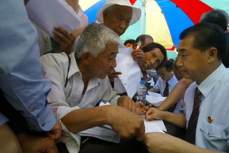 來上訪的劉女士說,第一次接訪時她也知道,但根本沒抱希望,但聽說上次許多人反映的問題確實得到了解決,今天就趕過來了。省高院工作人員說,上午10時剛過,就已經(jīng)發(fā)出3000張排號單。上午,省高院院長張立勇接待群眾近百人。因天氣炎熱,接訪現(xiàn)場還專門準備了綠豆湯和礦泉水。