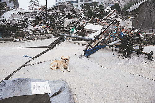 北川已不可能在原址上重建。那一塊塊殘垣斷壁,以及廢墟下一具具永遠(yuǎn)合不上眼睛的亡魂,將成為人類災(zāi)難史上永不磨滅的記憶。那樣的記憶,將會由人類來共同分擔(dān)。而我最痛悔的是,沒能親自抱一抱那條小狗,我的相機(jī)里也沒留下一張我與它的合影。
