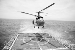 反潛直升機(jī)離艦搜索目標(biāo)。 本報(bào)記者 孫陽(yáng)攝