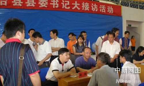 公開接訪從上午八點三十分開始,到十一點三十分結束。接訪現場等待的群眾共有三百多人,共受理了六十五人的接訪材料,其中該縣委書記梁健親自受理了三十多件。