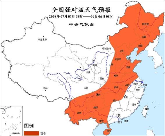 中新網7月5日電 據問天網消息:中央氣象臺5日6時繼續發布強對流天氣預報。