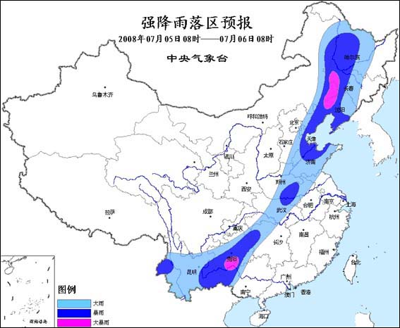 預計今天白天到夜間,云南東部和西部、貴州東部和南部、河南東南部、山東北部、河北東部、天津、內蒙古東部偏南地區以及東北地區中西部等地部分地區有暴雨,局部地區有大暴雨。