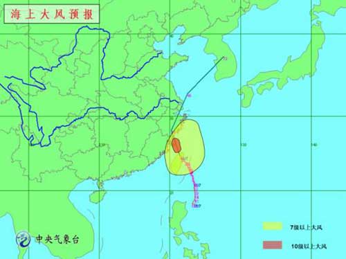 預(yù)計,強風(fēng)暴中心將以每小時15~20公里的速度向西北偏北方向移動,逐漸向浙閩沿海靠近,強度維持或略有減弱,并將于18日下午到19日早晨在浙江溫嶺到福建連江一帶沿海再次登陸。