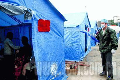 記者在地震受災(zāi)最嚴(yán)重的會(huì)理縣黎溪區(qū)的當(dāng)?shù)乜h級(jí)醫(yī)院——會(huì)南醫(yī)院看到,醫(yī)院房屋受損非常嚴(yán)重,很多房屋成為危房,醫(yī)療地點(diǎn)臨時(shí)搭建在附近小學(xué)校園里。