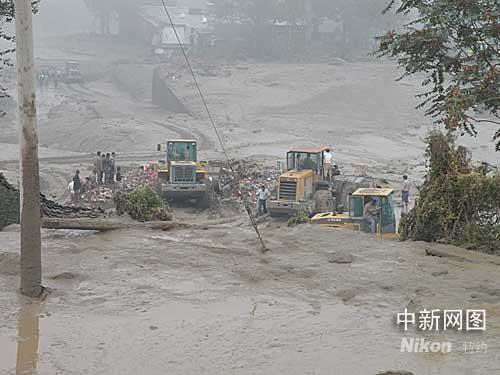 目前,搶險搶救工作正緊張有序的進行中。距垮塌尾礦下游大約一公里處是一集貿市場,集貿市場已被泥石流夷為平地,集貿市場附近的云合村部分房屋受塤。