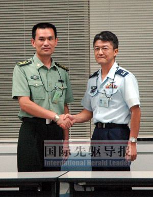 中國(guó)軍官訪(fǎng)日活動(dòng)是中日兩國(guó)政府共同定下的交流項(xiàng)目。然而出人意料的是,與去年中國(guó)“深圳”號(hào)導(dǎo)彈驅(qū)逐艦訪(fǎng)日時(shí)熱鬧的情形不同,這回中國(guó)軍官的到來(lái)幾乎沒(méi)有得到什么關(guān)注。5天的訪(fǎng)問(wèn),《國(guó)際先驅(qū)導(dǎo)報(bào)》記者僅從日本防衛(wèi)省方面得到了采訪(fǎng)9月11日交流會(huì)的機(jī)會(huì),而且只能在開(kāi)會(huì)前雙方團(tuán)長(zhǎng)握手時(shí)拍照,交流會(huì)本身一點(diǎn)也不對(duì)媒體開(kāi)放。