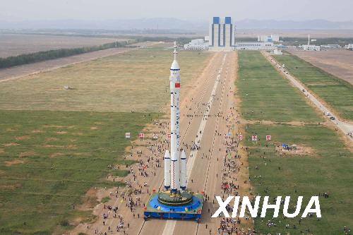 20日15時(shí)15分,當(dāng)神舟七號(hào)載人飛船、長征二號(hào)F運(yùn)載火箭和逃逸塔組合體,經(jīng)過一小時(shí)零五分的行駛,順利垂直轉(zhuǎn)運(yùn)至1500米之外的發(fā)射區(qū)時(shí),現(xiàn)場人群中爆發(fā)出一陣歡呼。這標(biāo)志著神七任務(wù)已經(jīng)進(jìn)入最后的發(fā)射準(zhǔn)備階段。