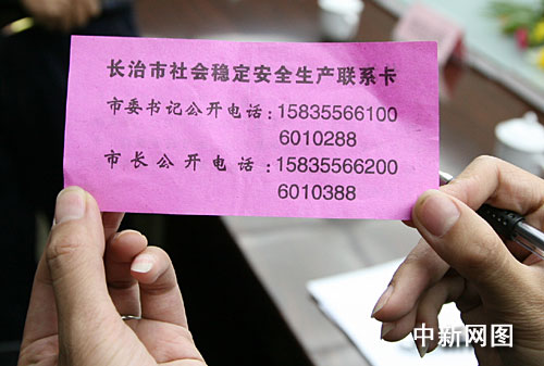據介紹,長治推出書記市長“名片”的初衷,乃是希望民眾能夠及時將身邊的安全生產和社會穩定的問題及隱患,向政府反映,以求能夠得到迅速解決。而記者在采訪中發現,這個“安全熱線”實際上已經成為了“民生熱線”。