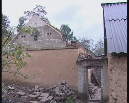 解說;就在這時,村里的抱著孩子的大嫂把記者拉到了自己的家里,訴說家里的滲水情況。
