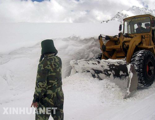 持續(xù)強降雪和雪崩造成川藏公路中斷以后,負責公路養(yǎng)護并擔負搶通任務的武警交通四支隊出動兵力120余人次,裝載機6臺,自卸車4臺,從6個點同時推進,對川藏公路進行搶通。(張申酉)