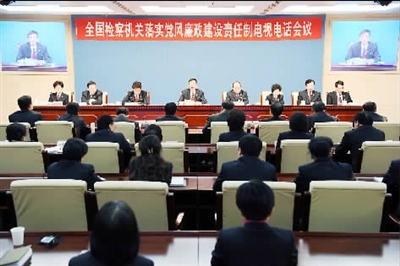 全國檢察機關落實黨風廉政建設責任制電視電話會議會場。肖杰攝 來源:檢察日報