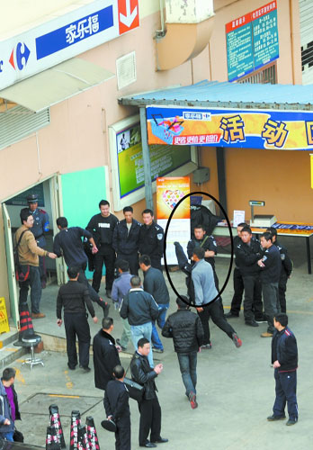 據當時在現場的民警介紹,接到要擊斃劫匪的任務后,周警官很快進入家樂福,并在收銀臺下面藏好了身,位置距離當時陸志文劫持人質的家樂福風險控制部只有七八米遠。風險控制部的位置非常隱蔽,并沒有外墻開窗的便利條件,警方無法從商場外面實施射擊。