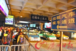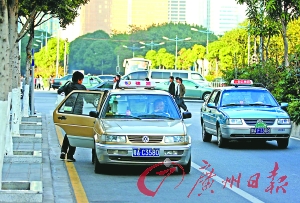 昨日上午8時30分,記者在環市路小北路路口數了一下,在短短5分鐘時間內有16輛出租車經過,其中5輛是空車。剛剛準備打車去天河上班的陳先生說,這樣的車流量和以前沒有太大的差別!耙郧爸灰趪埓髲B附近等上三四分鐘就能打到車,今天的情況也差不多。”陳先生說。而在廣州大道中,記者發現,出租車的數量也和平時沒有多大區別。