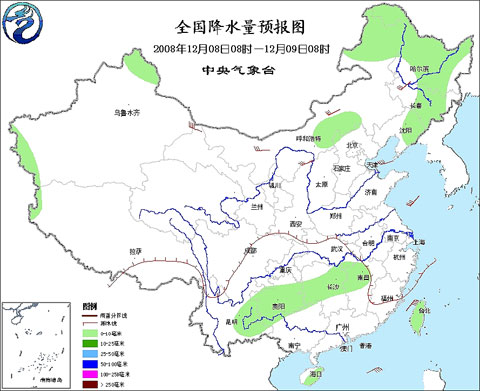 2008年12月8日8時—12月9日8時全國降水量預(yù)報圖