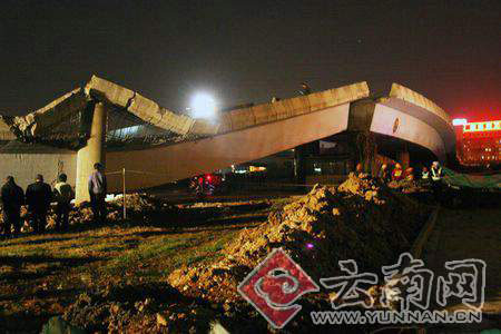 中新社昆明十二月十日電 (楊晶)昆明市政府今日證實,九日晚發生在昆明北郊的在拆立交橋垮塌事故已造成兩人死亡、四人受傷,受傷人員已及時被送往醫院救治,事故原因初步查明系施工單位違反操作規程所致。