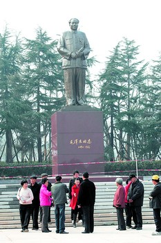 毛澤東廣場原名毛澤東同志銅像廣場,建于1993年,受當(dāng)時(shí)環(huán)境條件所限,廣場面積僅3970平方米。毛主席銅像以開國大典時(shí)手執(zhí)文稿的姿勢為母本,總高10.1米,朝向?yàn)闁|偏南。