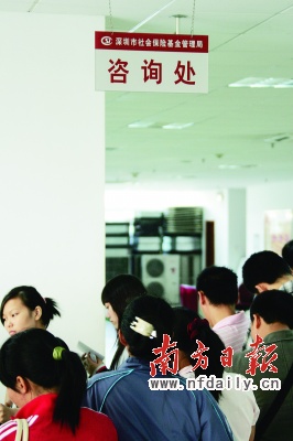 時(shí)近年末,深圳市社保中心個(gè)人服務(wù)窗口顯得很忙碌。資料圖片