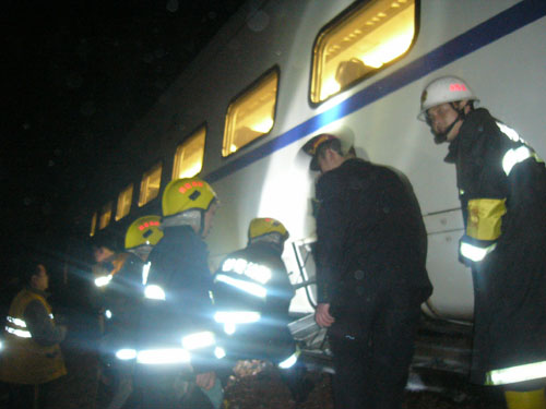 12月24日晚21時59分,“和諧號”動車組列車行駛在京廣線鶴壁淇縣段時,電機突然冒出滾滾濃煙,導(dǎo)致整條京廣線被迫受阻中斷。當?shù)叵拦俦诮拥綀缶螅杆仝s到現(xiàn)場實施撲救。事后,“和諧號”列車被緊急開往河南衛(wèi)輝站維修。