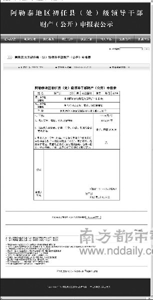 新年第一天,新疆阿勒泰地區的廉政網上,首批公布了55名新提拔正科和副縣級干部的財產申報資料。同一天,該地區啟動了縣(處)級領導干部的首次財產申報工作。