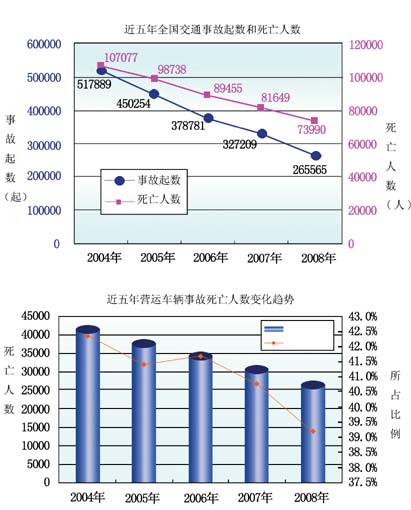 就在今天,公安部網(wǎng)站發(fā)表文章稱,2008年“全國道路交通安全形勢總體平穩(wěn)”。文章列舉了一系列數(shù)據(jù):2008年,全國共發(fā)生道路交通事故265204起,造成73484人死亡、304919人受傷,直接財(cái)產(chǎn)損失10.1億元。與2007年相比,以上各項(xiàng)都有所減少。