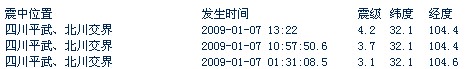 今(7)日13:22分,平武、北川交界(北緯32.1,東經104.4) 發生4.2級余震。成都市區有明顯震感,持續時間較短。