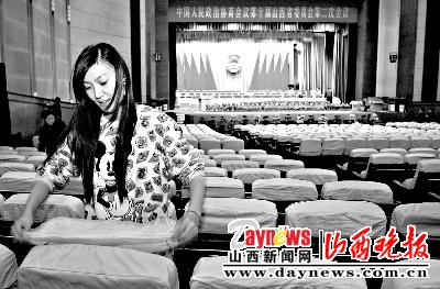 今日上午8時,記者在本次大會的會場之一太原市工人文化宮看到,條幅已經拉起,拱門也已豎起。工作人員正在更換白色座套,主席臺上已經擺滿鮮花,準備基本就緒。在委員的接待賓館之一政協(xié)賓館,會務、保衛(wèi)工作人員也已經就位,部分代表正在辦理報到手續(xù)。委員張書慶告訴記者,從登記到入住只花了兩三分鐘,他準備用剩下的時間再研究一下自己的提案。