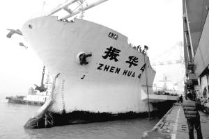 昨天夜里11時(shí),“振華4”號(hào)輪靠上上海橫沙錨地。