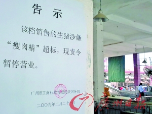 “瘦肉精”中毒事件發(fā)生后,廣州市委、市政府領導高度重視,目前有關部門已查明導致本次“瘦肉精”中毒的生豬由生豬個體經(jīng)營者收購自湖南省個別不良生豬養(yǎng)殖戶,經(jīng)營者偽造檢疫合格證逃避檢驗,通過天河牲畜批發(fā)市場流出。工商部門已對廣州市三大生豬批發(fā)市場采取24小時駐場管理,3名嫌疑人已呈批刑拘。