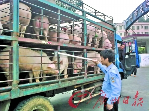 目前,天河區(qū)政府已對天河牲畜市場采取嚴密的監(jiān)控措施,工商部門已對廣州市三大生豬批發(fā)市場采取24小時駐場管理措施,配合駐場農(nóng)業(yè)部門開展檢測和生豬來源監(jiān)控工作,特別加強對來自湖南冷水江市、漣源市、新化縣、衡陽縣的生豬的重點監(jiān)控,嚴禁不合格豬肉進入廣州生豬交易市場銷售。