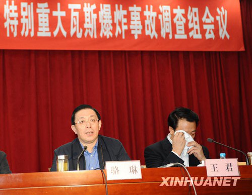 有記者注意到,在會議上,調查組副組長、山西省省長王君心情沉重。他哽咽著向死難礦工及礦工家屬致歉。王君情緒激動地哽咽許久道: “屯蘭煤礦瓦斯爆炸事故影響極其壞,我們對不起……死難礦工,也……對不起……他們的家屬……”