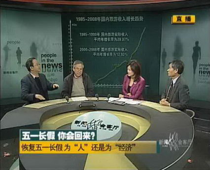 劉思敏:如果有證據證明,全中國就只有蔡教授最聰明,這個結論就成立。為什么呢?因為我們不否認,盡管現在有些人說,希望否認當初設立黃金周是為了拉動內需。我覺得根據我的研究,當初的最初目的就是為了拉動內需。那個時候是1999年亞洲金融危機的時候,我們的確把黃金周作為一個工具使用了,那個時候是全國的共識,至少是國務院的共識,否則不會這么實行,F在在全球性的金融海嘯的背景下,全國那么多人士提出恢復五一黃金周,那么多省份,包括黃華華省長也提出,而且認識到對拉動經濟的作用。