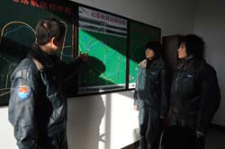 采訪中,該飛行學院領導向我們介紹,空軍首批女殲擊機飛行學員,是2005年9月我國按照“2.5+1.5”飛行學員培訓方式,從全國12個省、20余萬名應屆女高中畢業生中選取的,共35人。經過空軍航空大學兩年半基礎教育訓練和兩所飛行學院一年多初教機、高教機訓練,目前已有16名學員通過了各種考試,并成功實現了單飛。這標志著中華民族擁有女殲擊機飛行員的偉大夢想已化作現實,共和國鋼鐵長城又平添了一支新生的藍天屏障。