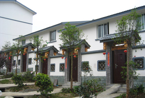 中新網5月7日電(記者 吳翔) 站在四川省都江堰市向峨鄉棋盤村中,你很難相信這是一個“5.12”地震災民安置點。淡色的三層小樓在道路兩旁一字排開,從外面看就像地產廣告里的聯排別墅。村口是寬闊的停車場,離村不遠處正在修建休閑中心。安置點里種滿花草,還設有警務室、醫務室、小賣部等配套設施,附近的小學也在修建當中。1519人、492戶村民已搬入其中。