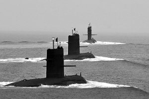 ——2002年5月至9月,中國海軍艦艇編隊首次環球航行,共穿越15條著名海峽水道,橫跨68個緯度,6次穿越赤道,訪問10個國家和港口,總航程33000海里。至此,中國海軍艦艇編隊壯游三大洋。同時,一個新的重大轉折也在悄然完成。軍艦走出國門,開始從單純航渡出訪,轉變為遠航訓練結合出訪,甚至是以訓練為主。征服遠海大洋的能力,體現著一支現代海軍的訓練水平。1980年10月,南海艦隊艦艇編隊,首次出巴林塘海峽到太平洋遠航訓練。經過海峽西口的“魔鬼三角洲”時,因缺乏經驗,一艘軍艦上的10名艦員被巨浪打下大海,2人遇難。這是人民海軍走向大洋付出的血的代價。此后,海軍遠航編隊經驗越來越豐富,不畏暗礁險灘,勇闖驚濤駭浪。在南中國海,戰艦遭遇狂風巨浪,重達1噸的鐵錨被風浪掀上甲板;在太平洋,編隊遭遇持續半個月之久的大風浪,滿載排水量為數萬噸的補給艦強烈震顫,逆風頂浪,頑強前進;在比斯開灣,編隊遭遇12級大風,艦體左右搖擺近30度,艦艉螺旋槳多次露出海面……20多年過去,人民海軍遠航訓練已經發展成為一種常態:每年有上百艘次水面艦艇駛向遠海大洋,晝夜連續航行從數百海里到數千海里,潛艇水下隱蔽待機由數十天到數月,航空兵長途奔襲由一般氣象條件到復雜氣象條件,上千艘次艦機在太平洋海域進行多課目訓練。