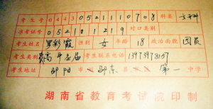 昨天,當地某媒體向本報記者透露,現任邵東縣招考辦主任申曉云曾親口承認,羅彩霞是邵東唯一有兩份檔案的學生。